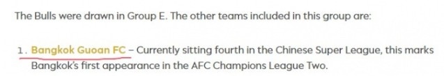 曼谷国安(原文如此):中超排名第4位,首次亮相亚足联二级俱乐部赛事。
