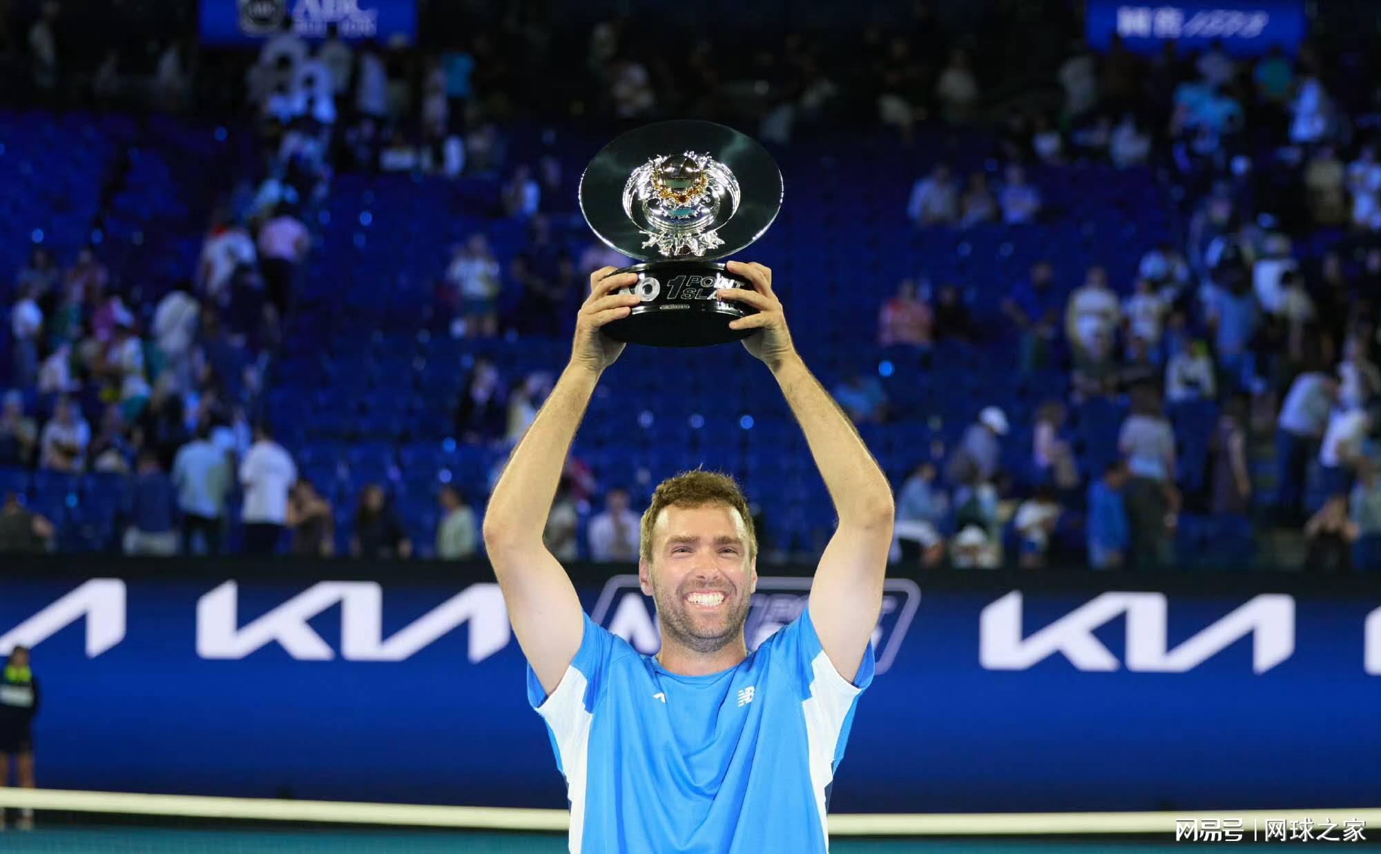 墨尔本的夜色中爆发出震耳欲聋的欢呼,来自悉尼的业余网球教练——乔丹.史密斯爆冷夺得了今年澳网的一球致胜的冠军,独揽百万澳元大奖!